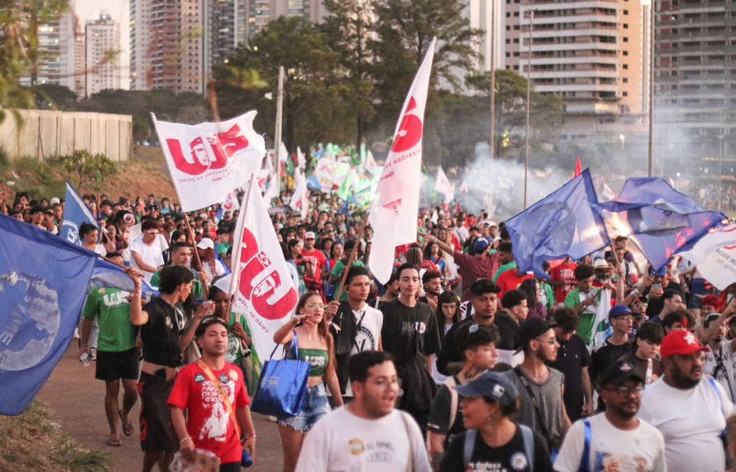 “Sem perdão, nem anistia! Bolsonaro na cadeia é por justiça!”, entoavam os estudantes durante ato de rua que aconteceu na tarde desta sexta-feira (18), em Goiânia. A manifestação contou com diversos movimentos estudantis, unindo cerca de 15 mil universitários de todo o país que compareceram ao 60º Congresso da UNE (Conune).